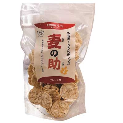 【麦の助 プレーン味】もち麦100%チップスです。北播磨のもち麦「キラリモチ」使用。 そのまま食べても、チーズやディップをつけて食べておいしい!